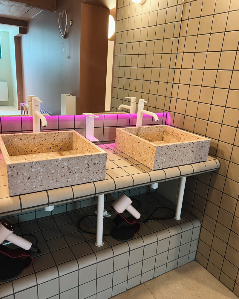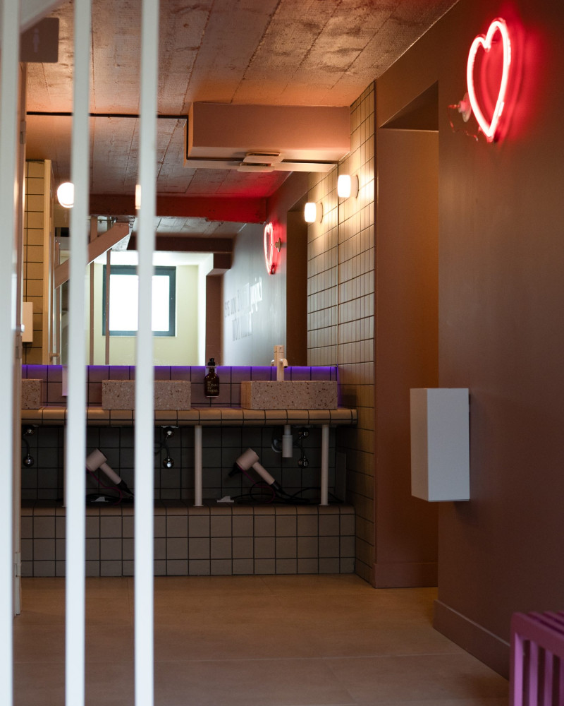 Ce lieu est conçu comme un véritable centre de vie. Après votre séance de sport, vous pouvez savourer un latte enrichi en collagène et vous faire une coiffure wavy chez AB Hair Studio.